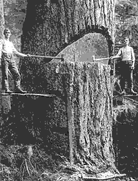 Barber-chair Stump with a split sticking up – when a tree trunk splits up in falling